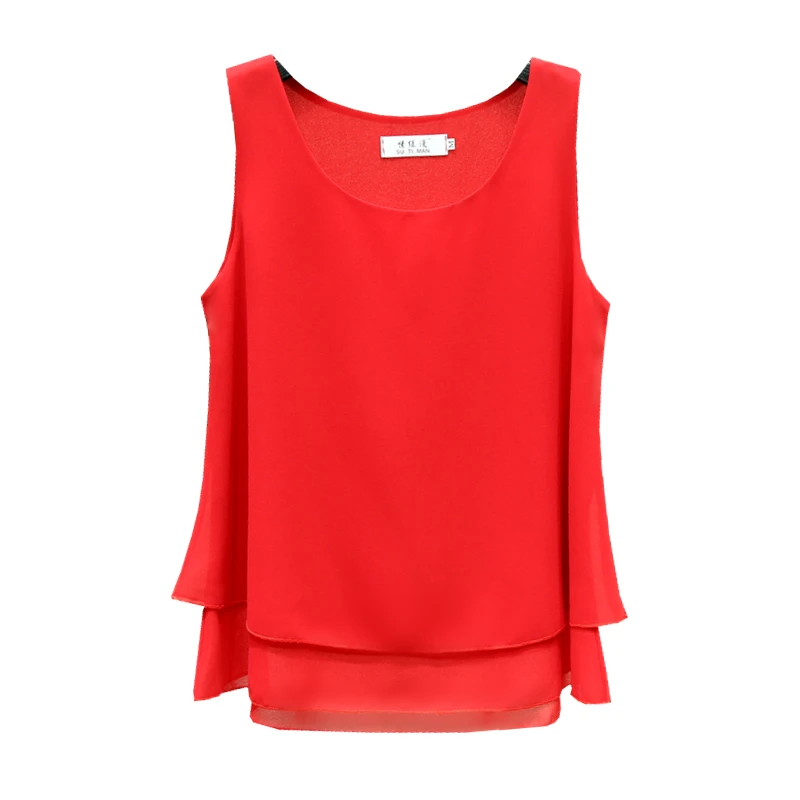 New 2019 New Fashion Summer Chiffon Blouses Women Plus Size 4XL Loose Sleeveless O-Neck Tops 13 Colors