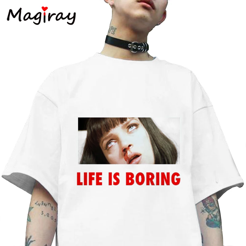 New Spoof Harajuku White Female T-shirt 2019 T Summer Novelty Tee Shirt Femme Life is Boring Letters Pr
