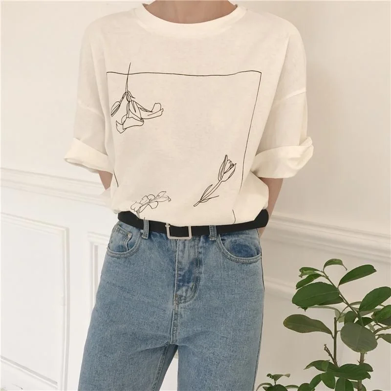 Ideal PUDO-XSX Loose Flower Graphic Tee Summer Fashion Women Tshirt Tumblr Vintage Fashion Aesthetic Grap