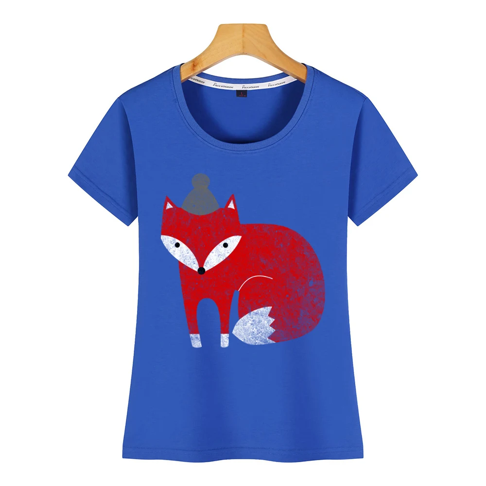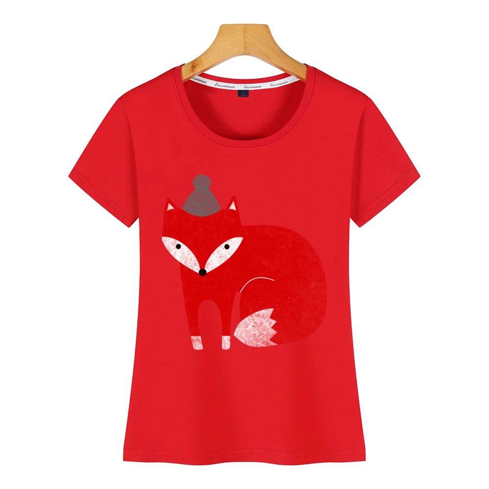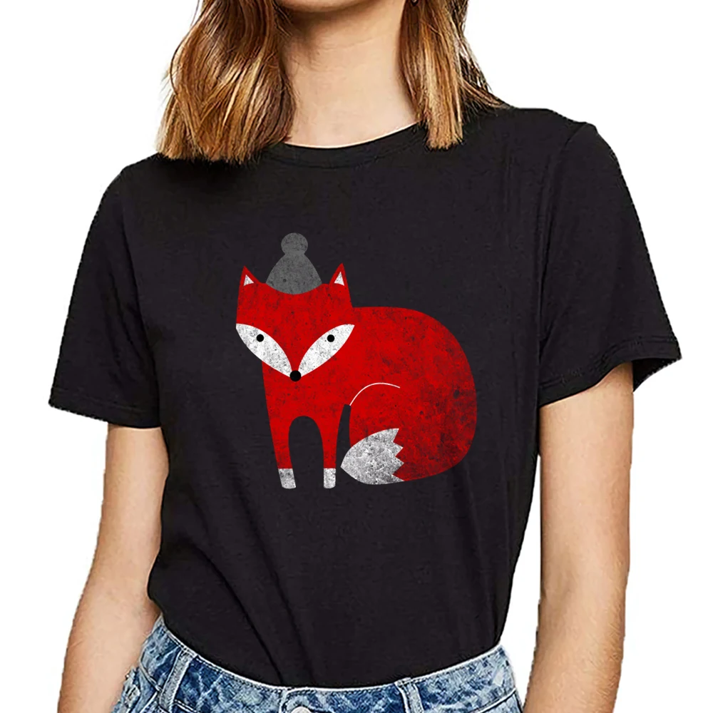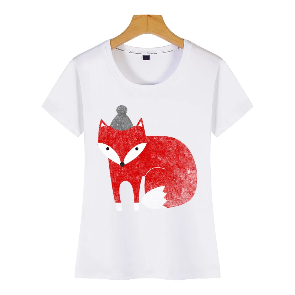 awesome Tops T Shirt Women fox winter with hat Design Black Cotton Female Tshirt